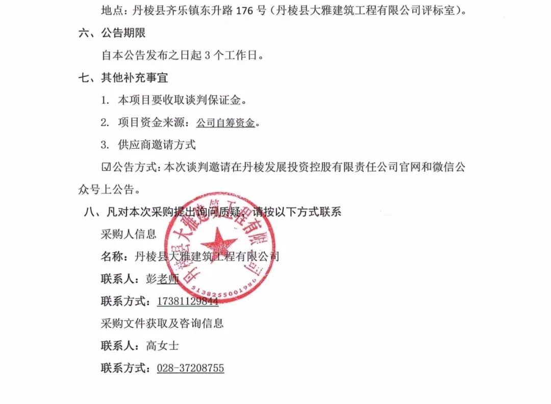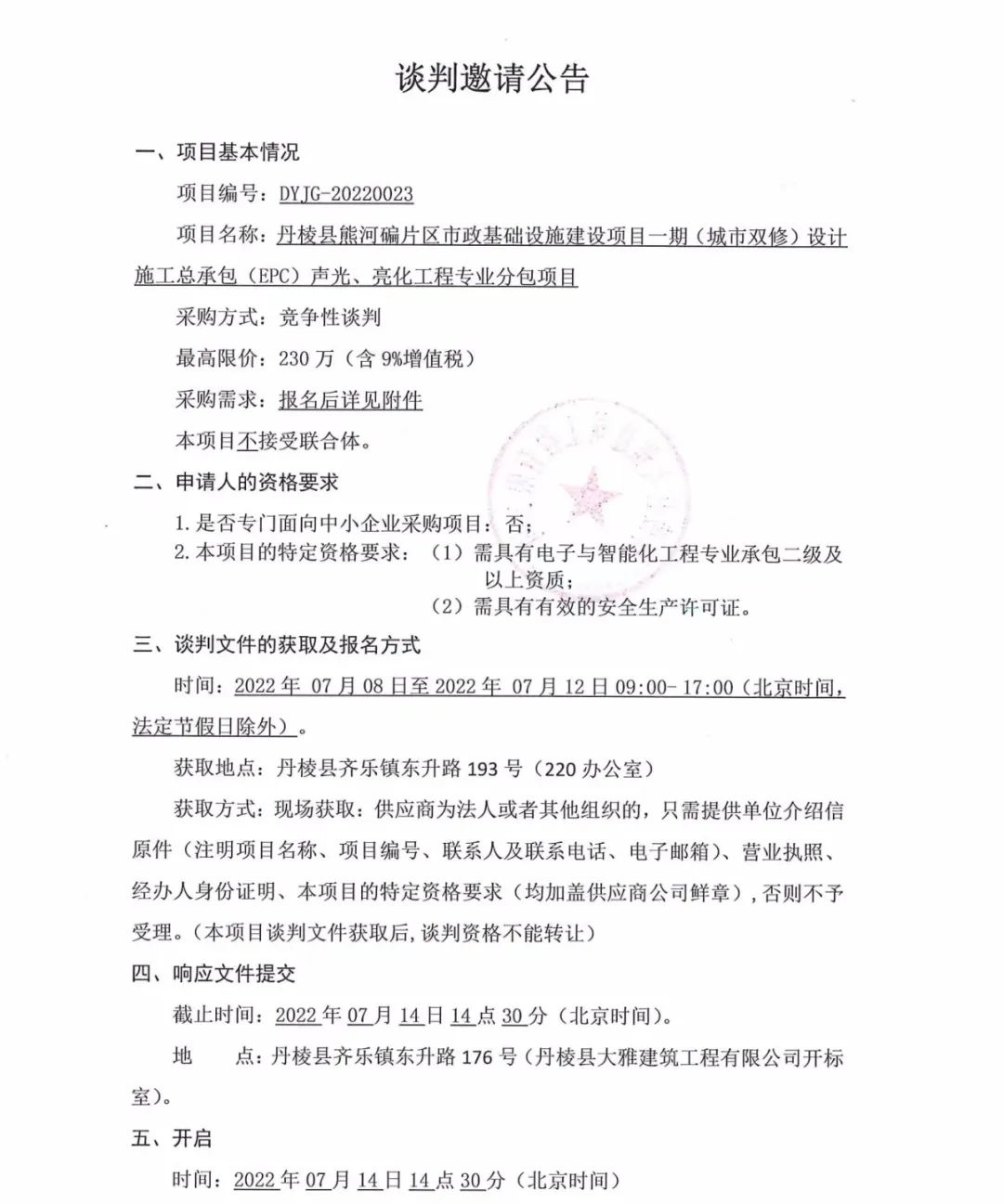 丹棱縣熊河碥片區(qū)市政基礎(chǔ)設(shè)施建設(shè)一期(城市雙修)設(shè)計施工總承包(EPC)聲光、亮化工程專業(yè)分包項目談判邀請公告