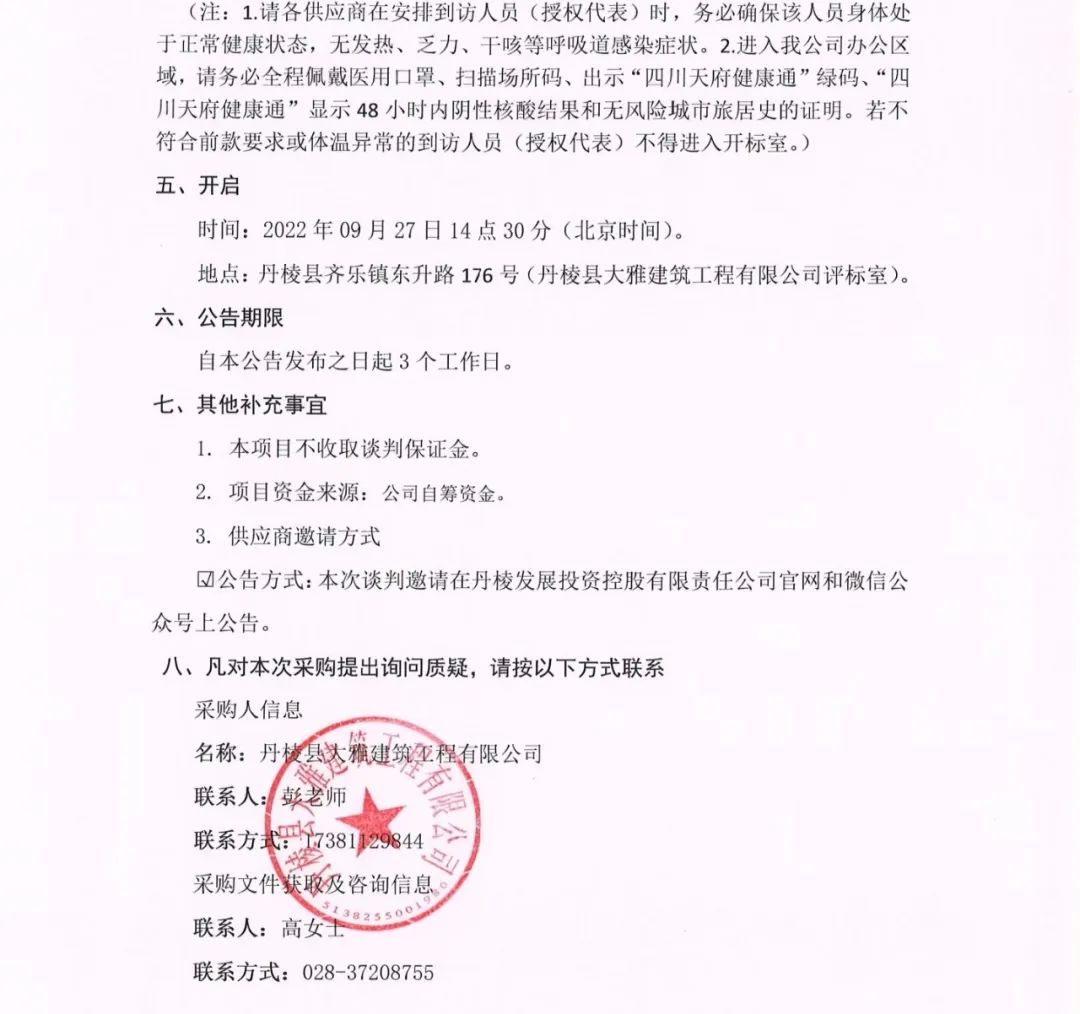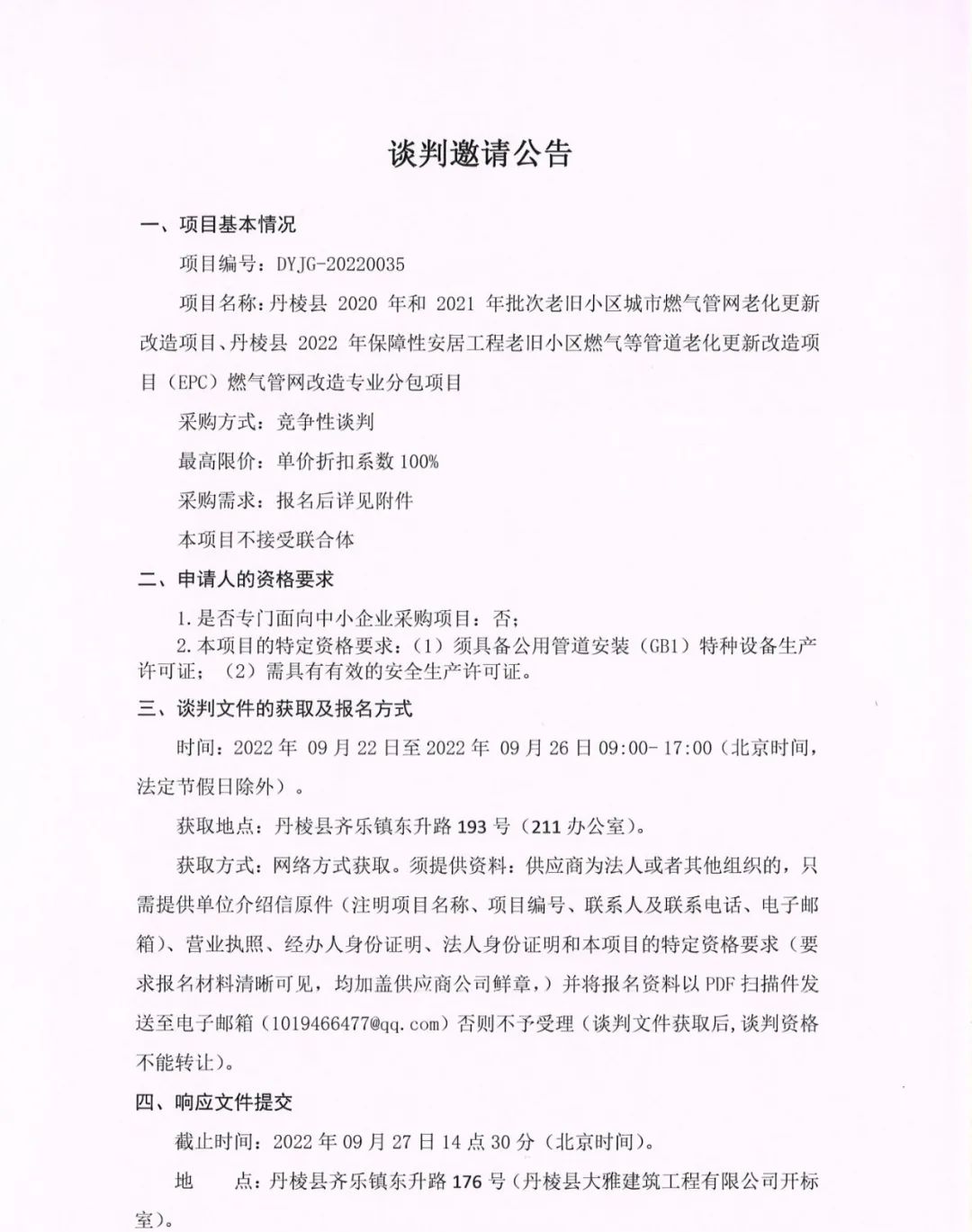 丹棱縣 2020 年、2021年及2022年批次老舊小區(qū)城市燃?xì)夤芫W(wǎng)老化更新改造項(xiàng)目燃?xì)夤芫W(wǎng)改造專業(yè)分包項(xiàng)目談判邀請公告