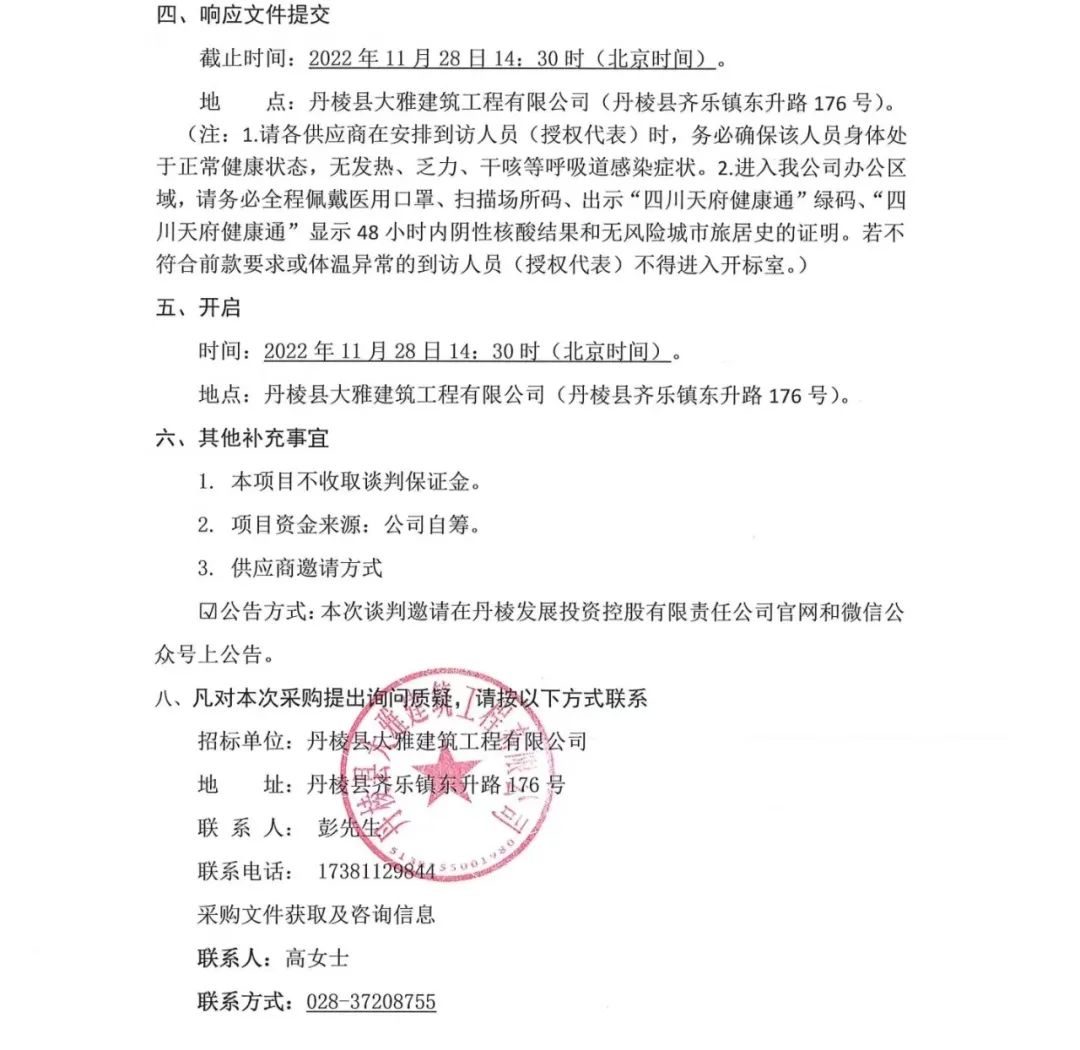 丹棱縣食品園區(qū)建設(shè)項(xiàng)目 (一期)--丹棱凍粑產(chǎn)業(yè)園建設(shè)項(xiàng)目設(shè)計(jì)、施工、采購(gòu)總承包 (EPC) 電梯采購(gòu)及安裝采購(gòu)項(xiàng)目談判邀請(qǐng)公告