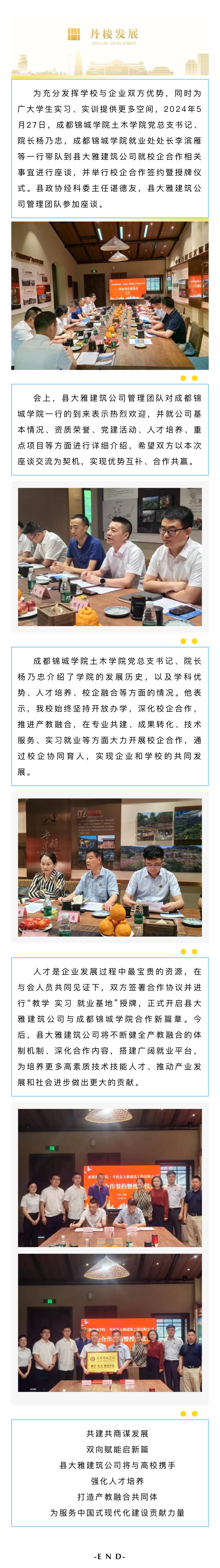 【縣大雅建筑公司】校企合作聚英才 育人筑夢創(chuàng)未來 | 縣大雅建筑公司與成都錦城學院開展校企合作簽約暨授牌儀式