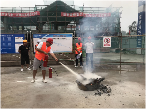 演練模擬施工現(xiàn)場材料堆場模板燃燒引起火災(zāi),項(xiàng)目現(xiàn)場人員發(fā)現(xiàn)火情,立即向項(xiàng)目管理人員報(bào)告,管理人員立即啟動(dòng)《施工生產(chǎn)現(xiàn)場火災(zāi)事故應(yīng)急救援預(yù)案》。不到2分鐘,疏散引導(dǎo)組將火災(zāi)現(xiàn)場被困人員全部安全有序疏散到了安全地帶,同時(shí),保衛(wèi)警戒組做好巡邏檢查工作,禁止無關(guān)人員進(jìn)入危險(xiǎn)區(qū)域,消防滅火組及時(shí)進(jìn)場切斷火災(zāi)現(xiàn)場的電源,迅速利用干粉滅火器進(jìn)行滅火。整個(gè)演練過程,組織得力,秩序井然。