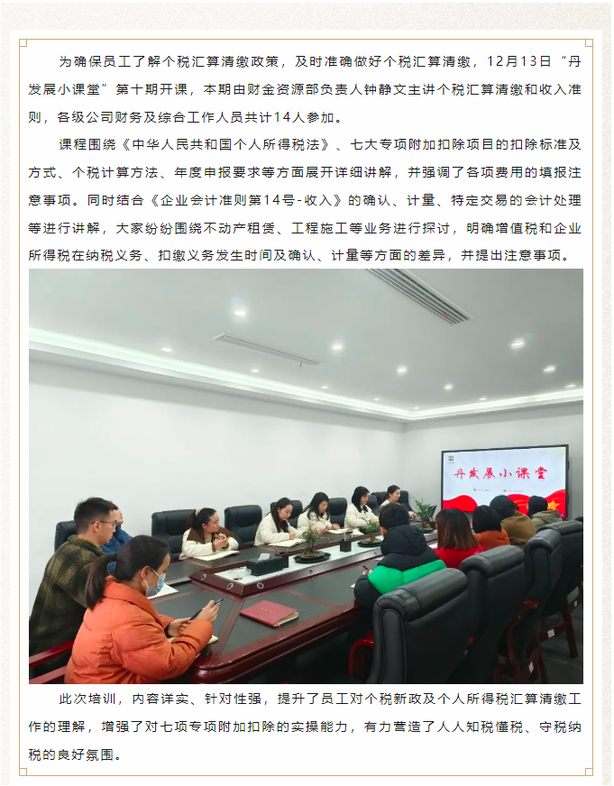個稅匯算清繳培訓(xùn)——“丹發(fā)展小課堂”第十期開講啦!